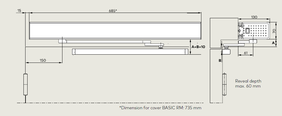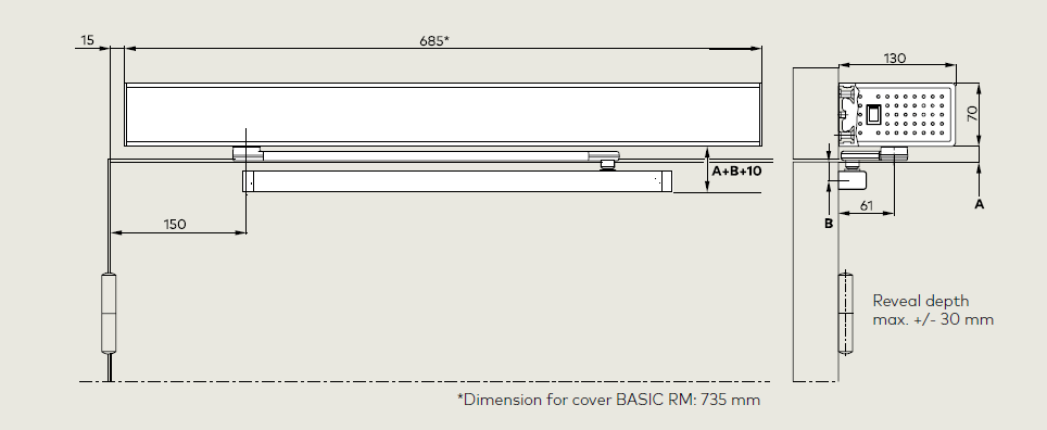 | Reveal depth for slide channel | +/– 30 mm | |
