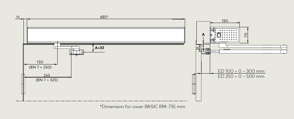 - Elegant visual appearance: dormakaba design provides a operator height of only 70 mm.